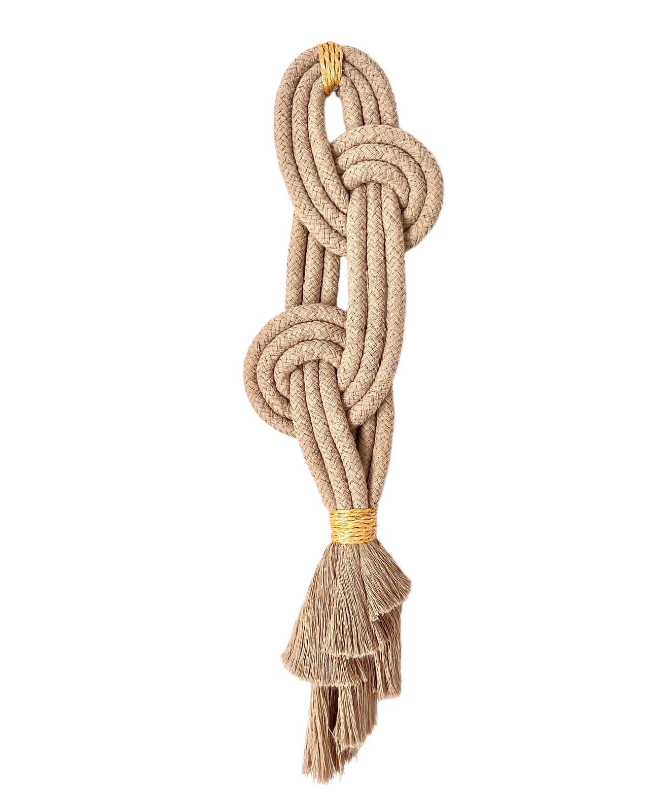 Adorno de Parede Artesanal Flow Off White em Corda de Algodão e Sisal Dourado
