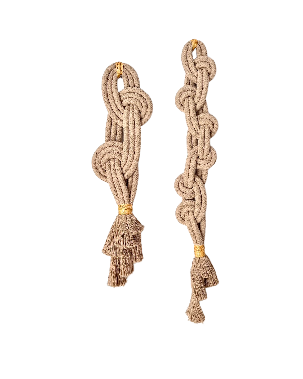 Adornos de Parede Artesanal — Par Fluid & Flow Off White em Corda de Algodão e Sisal Dourado